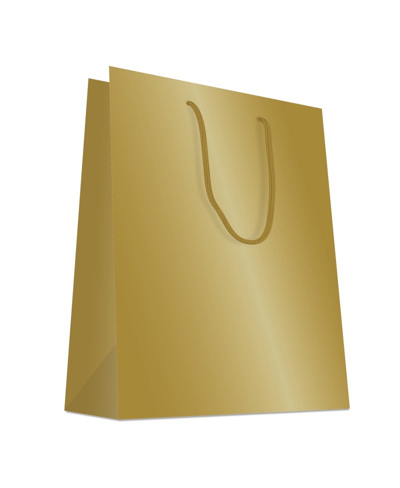 SAC LUXE 1 BOUTEILLE: Haute Qualité Matière: Papier Luxe mat Épaisseur: 170 gr Couleur: Or Dimensions: 11+11x39cm Poignées cordelières Revers de renfort au niveau des poignées Soufflets latéraux Fond en carton Conditionnement: Paquet de 20 sacs
